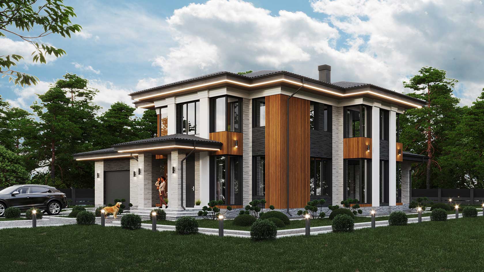 Грандиозный, продуманный, стильный. Проект «Империя» - гармоничное сочетание последних технологичных решений и прогрессивного дизайна частных пространств. Слияние модерна, хайтека, минимализма, выверенные геометричные формы, лаконичная архитектура и функциональность. Панорамные окна, террасы, отделка из бетона, тёплые природные тона, вставки из дерева, декоративного кирпича, металла. Добавить к этому стильные подъездные пути и мощение - всё это подчеркивает статус владельца и создает стильное архитектурное решение, притягивающее взгляды. «Империя» - уникальный проект для ценителей высокого уровня и смелых решений.